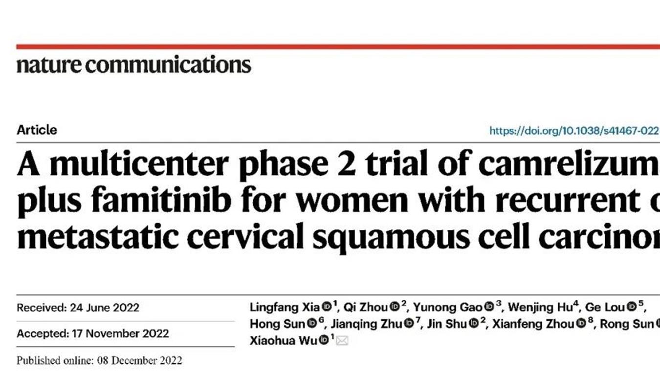 918博天堂创新药卡瑞利珠单抗联合法米替尼用于复发或转移性宫颈癌研究结果荣登JCO